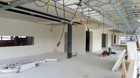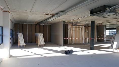 Voor een toonaangevend bedrijf in de affiliate marketing verzorgen wij de bouwbegeleiding waarbij 3 leegstaande verdiepingen (totaal 1500 m2) van hun huidige kantoorpand worden verbouwd, tot hoogwaardige kantoren met restaurant, een grootkeuken, presentatieruimte, diverse kantoren, toiletruimtes en een receptie. Inmiddels is de vloerverwarming en zijn de afwerkvloeren aangebracht en is de aannemer bezig met het aanbrengen van de houtskeletwanden. Op de betreffende verdiepingen komt een gecombineerde warmte-, koel- en ventilatiesysteem. De uitdaging is om de systeemplafonds zo hoog mogelijk te maken in combinatie met deze installatie.