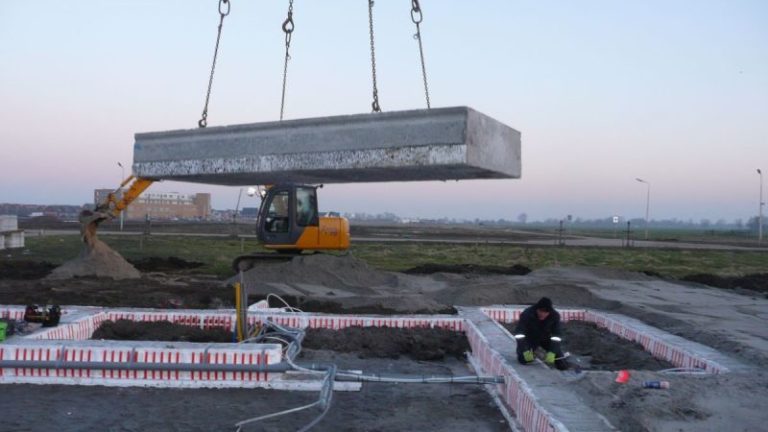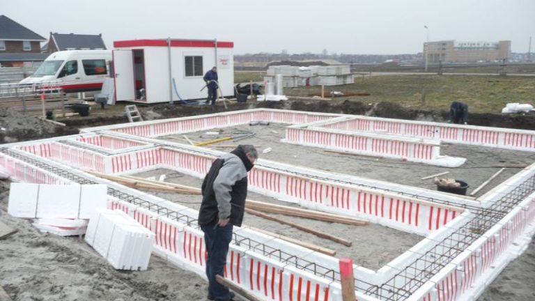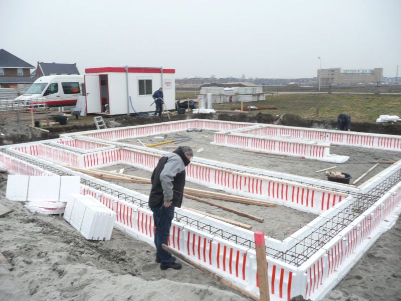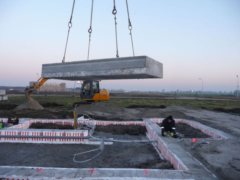 De woning is gebouwd op palen met een strokenfundering met daarop een geïsoleerde ribcassetteplaatvloer. Het binnenspouwblad van de begane grond is opgetrokken uit kalkzandsteenelementen met daarop een holle kanaalplaatvloer. Het binnenspouwblad van de verdieping bestaat uit HSB-wanden. Dak begint op de eerste verdiepingsvloer bestaande uit geïsoleerde dakplaatelementen met daar op een keramische pan. Het buitenspouwblad bestaat uit metselwerk in twee kleuren. Vanaf het maaiveld een plint van een donkere steen en verder afgewerkt met een lichtere steen in de zelfde structuur. Kozijnen ,ramen en deuren bestaan voor 90% uit kunststof in houtstructuur.