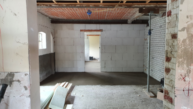 Inmiddels is de verbouwing redelijk ver gevorderd en wordt er binnenkort gestart met stukadoren en het betegelen van de sanitaire ruimtes. Het werk loopt volgens planning.