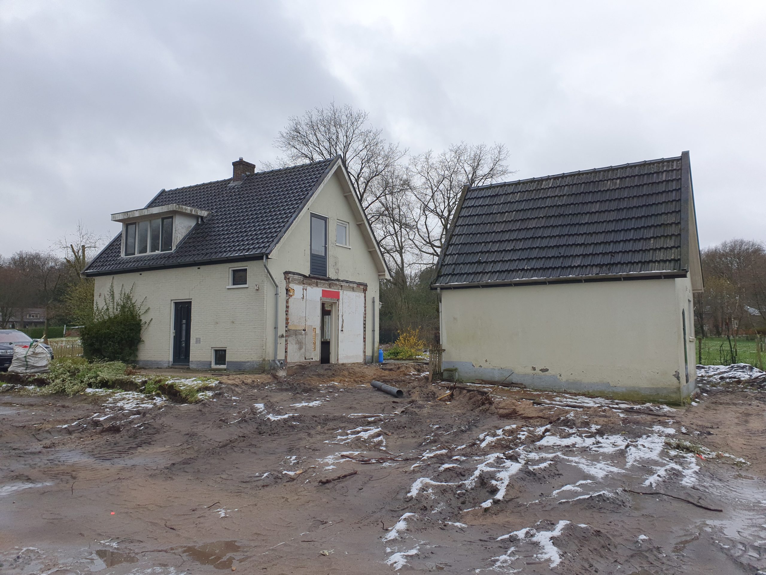 Met een architect is een ontwerp bedacht waarbij het middensegment volledig vernieuwd wordt met een keuken, eetkamer, badkamer en bijkeuken. Het middensegment koppelt het “voorhuis” aan het oude bakhuisje waar nu de ouderslaapkamer wordt gerealiseerd.