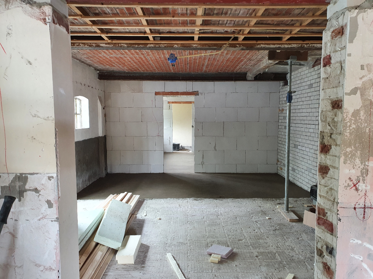 Inmiddels is de verbouwing redelijk ver gevorderd en wordt er binnenkort gestart met stukadoren en het betegelen van de sanitaire ruimtes. Het werk loopt volgens planning.